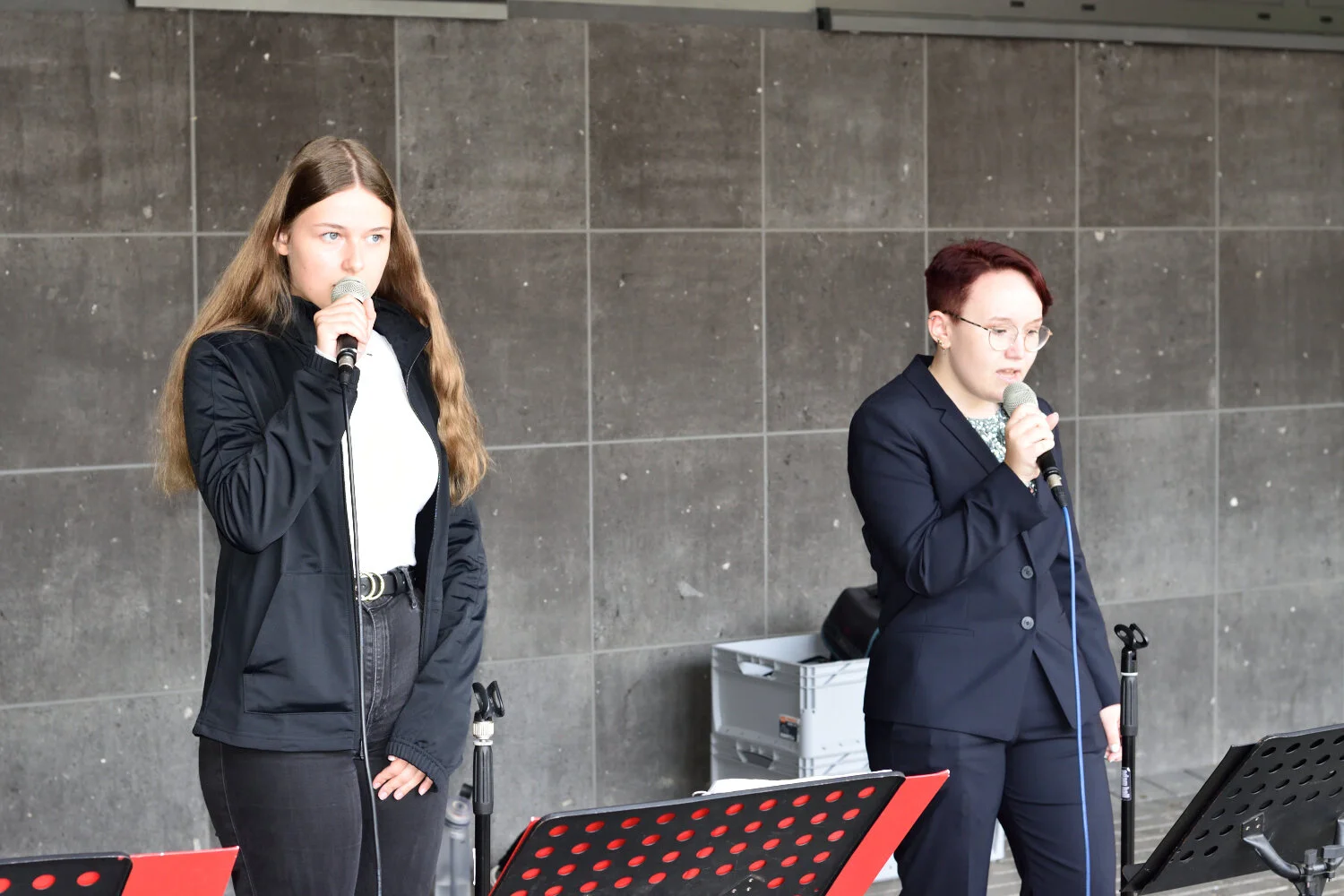 In einem amüsanten Dialog boten Marika Lou Zaufenberger (10a) und Mika Klenner (10a) den Gästen einen Einblick in die vergangenen Jahre ihrer schulischen Reise an der Heinrich-Roth-Realschule plus, bevor auch sie sich stellvertretend für die Klasse 10a bei ihren Lehrer*innen bedankten.