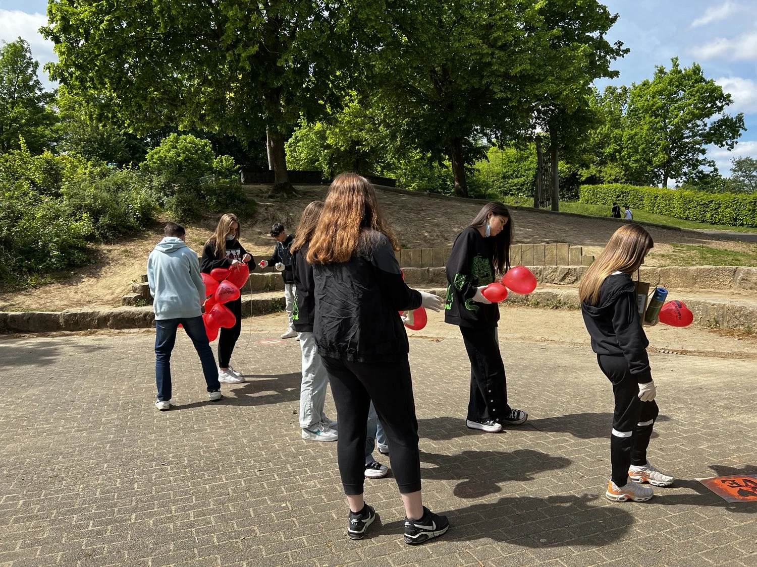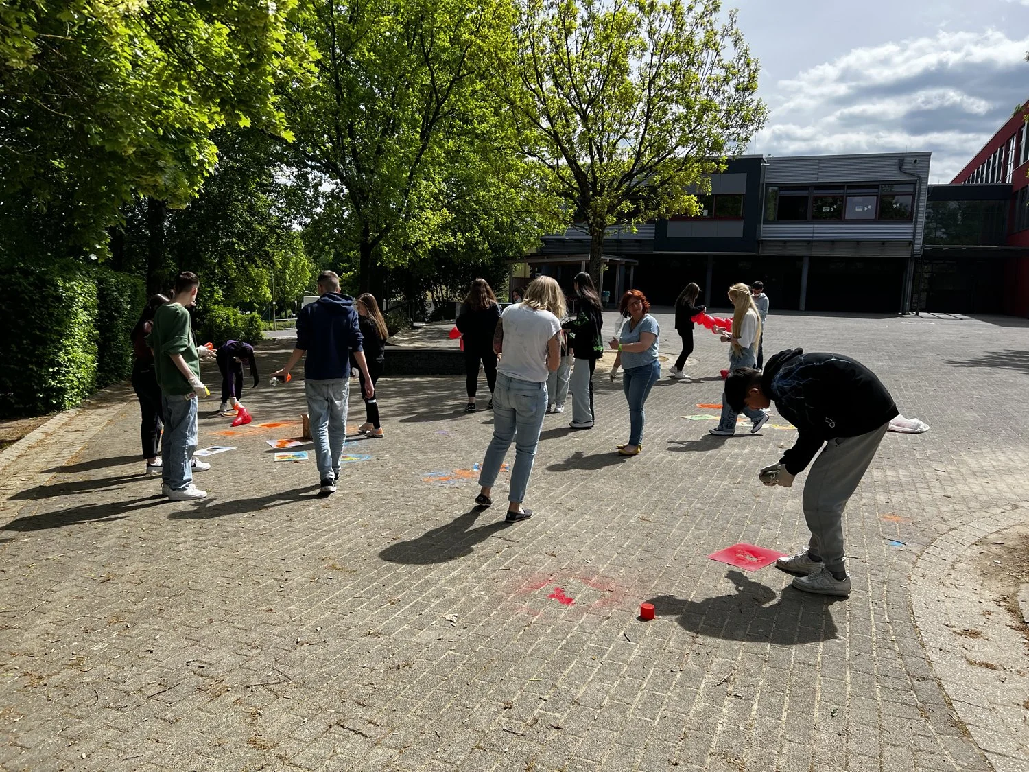 Im dritten Schritt ging es darum ein Zeichen zu setzen und sich aktiv gegen den Hass zu stellen. Die Schülerinnen und Schüler der Klassenstufe 8 durften mit Sprühkreide ganz legal positive Zeichen und Botschaften auf den Schulhof sprühen.